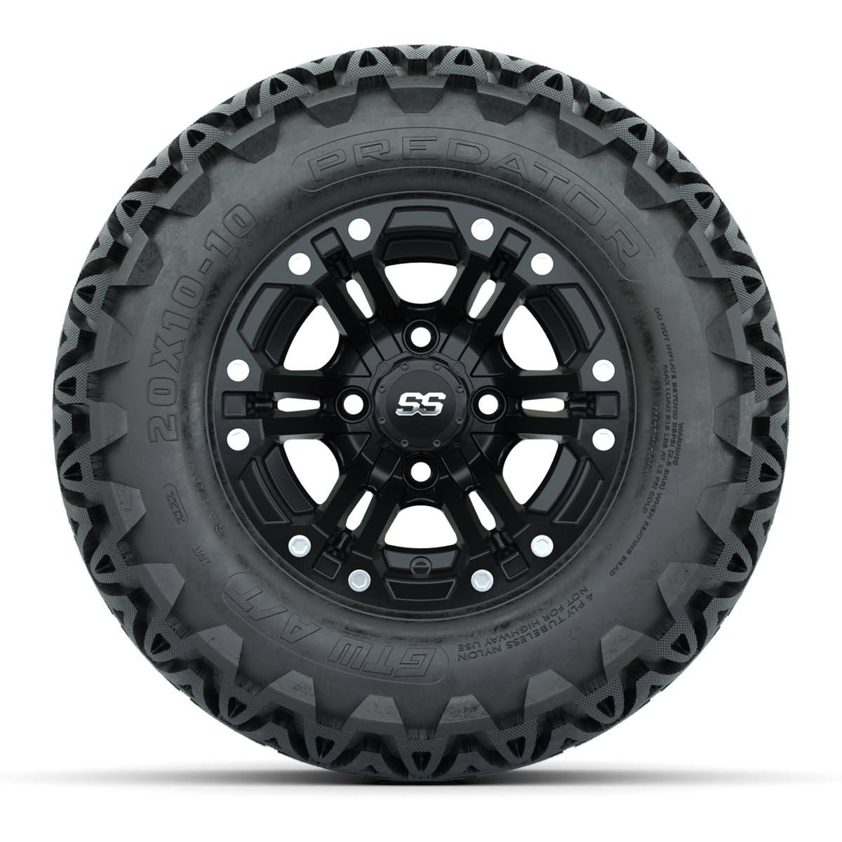 A set of (4) 10-inch Specter matte black lifted golf cart wheels on 20-inch A/T tires
