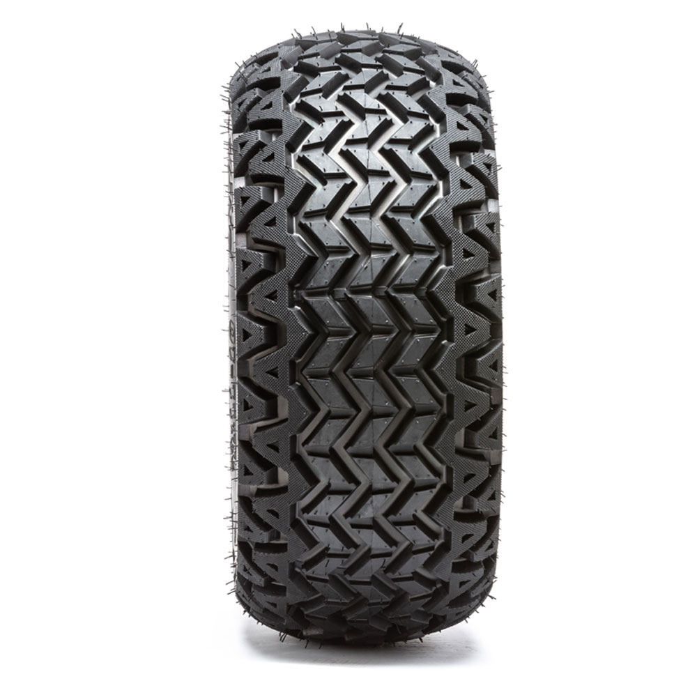A set of (4) 10-inch Vampire black/machined lifted golf cart wheels on 22-inch A/T tires