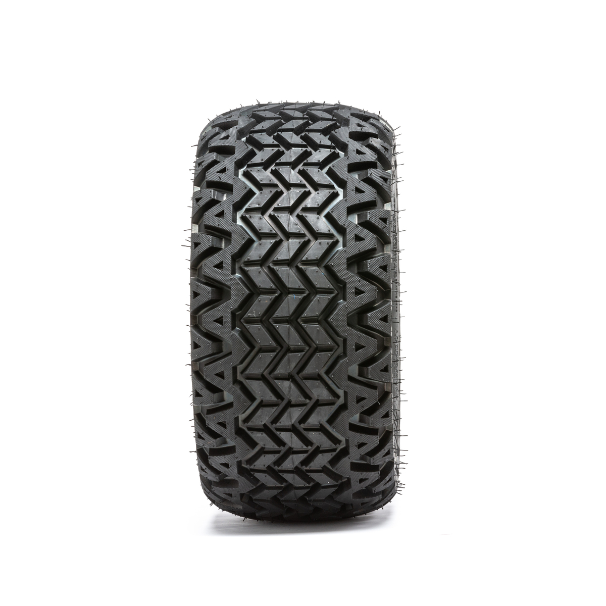 A set of (4) 10-inch Medusa silver/machined lifted golf cart wheels on 20-inch A/T tires