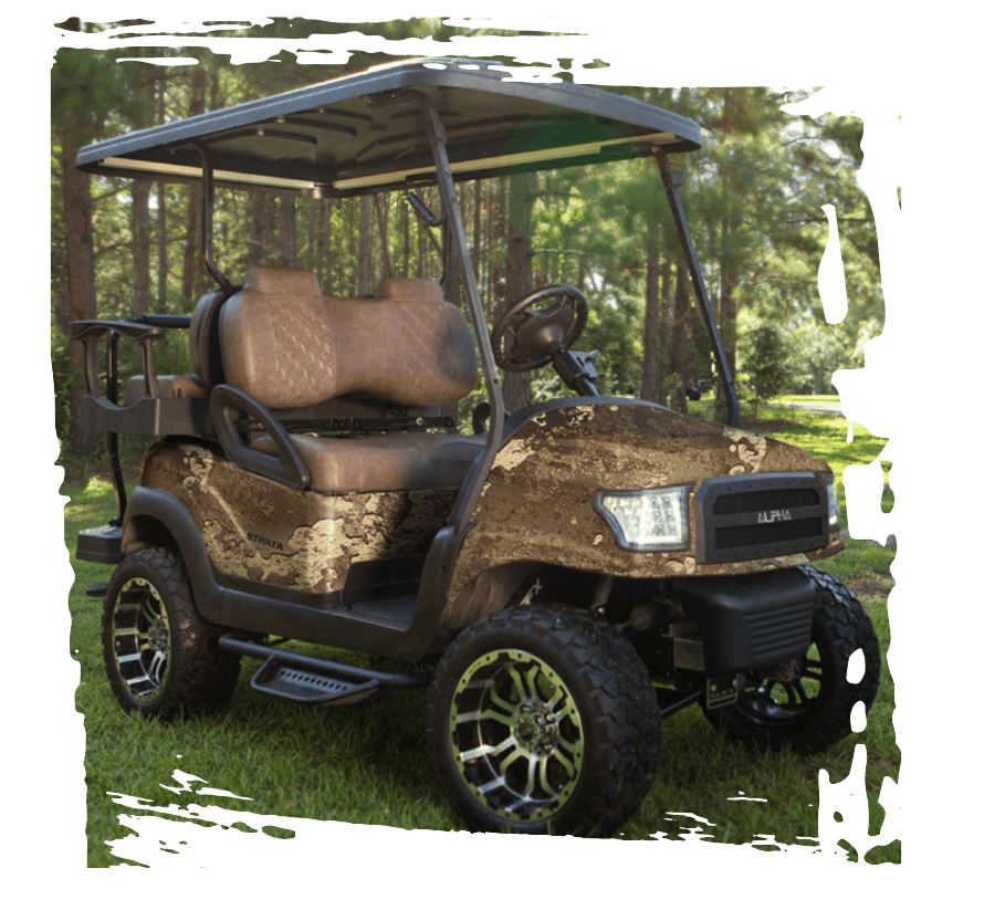 Opening day is here. Be the Alpha of the woods in our Hunter Camo Series. Whether it's our True Timber Strata, True Timber Kanati or Realtree Max-5 camo option, you're sure to blend right in. Complete your build with aggressive tires and wheels, comfortable seating, sturdy nerf bars and more. It's the ultimate way to gear up your Club Car Precedent this season.