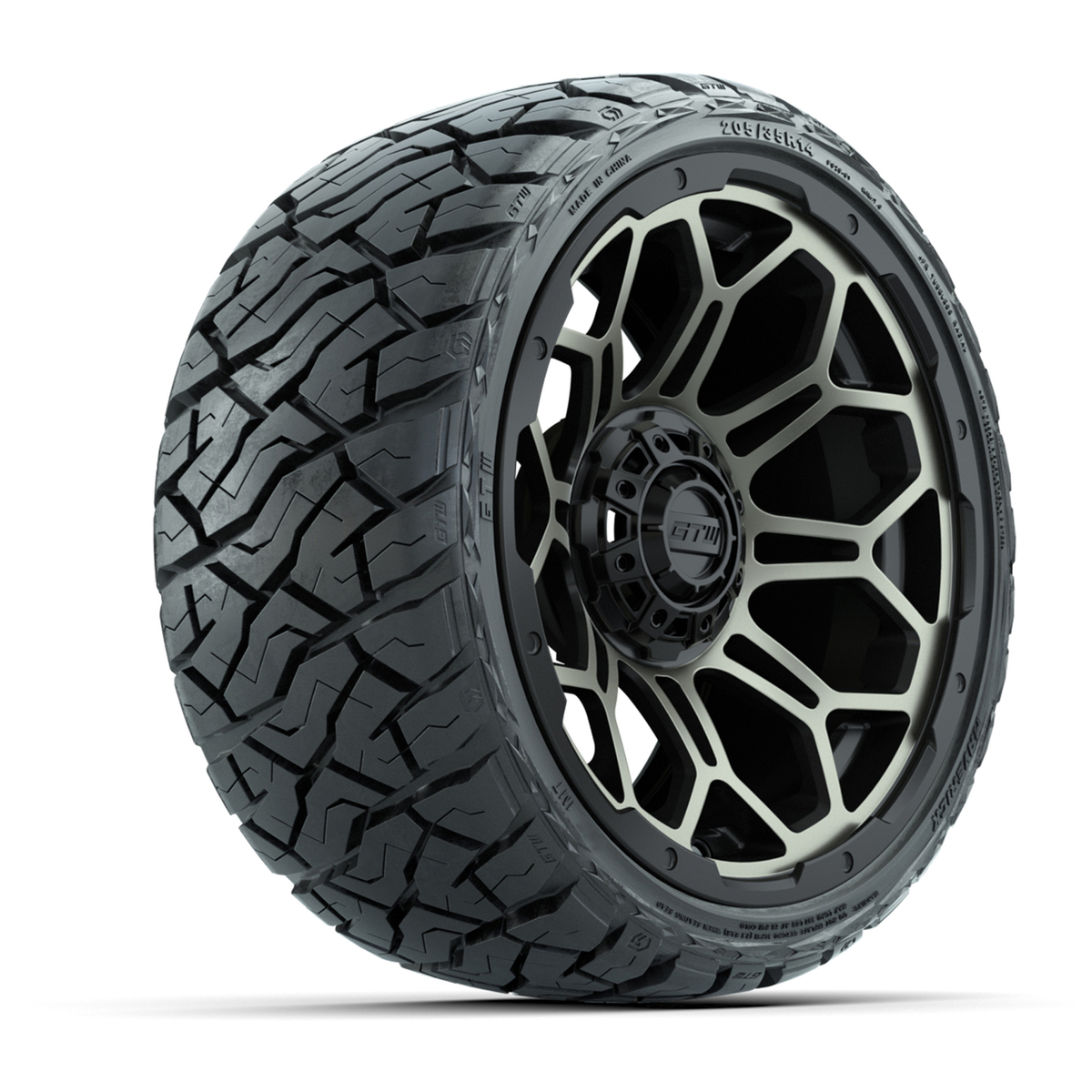 A set of (4) 14-inch GTW® Bravo Matte Bronze golf cart wheels Mounted on 205/35-R14 Maverick Low-Profile All-Terrain Tires