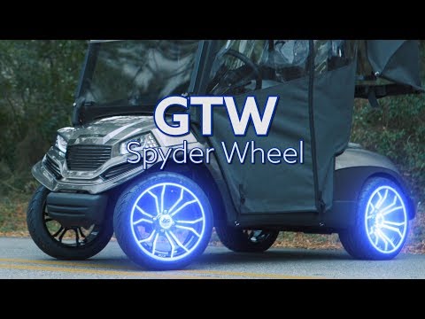 The latest Spyder wheel in the GTW® line can be clearly distinguished from the many other golf car wheels on the market. The Spyder is a GTW® Exclusive design and features a sharp Y-spoke design with red, blue or machined accents, striking sharp angles, deep concave profile, and dynamically-chamfered outer edge.