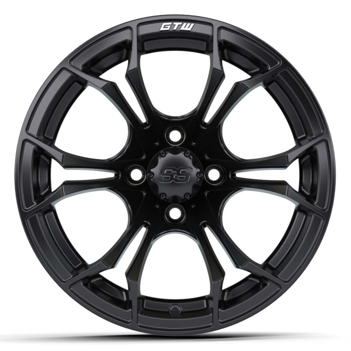 The latest Spyder wheel in the GTW line can be clearly distinguished from the many other golf car wheels on the market. The Spyder is a GTW Exclusive design and features a sharp Y-spoke design with red, blue or machined accents, striking sharp angles, deep concave profile, and dynamically-chamfered outer edge.